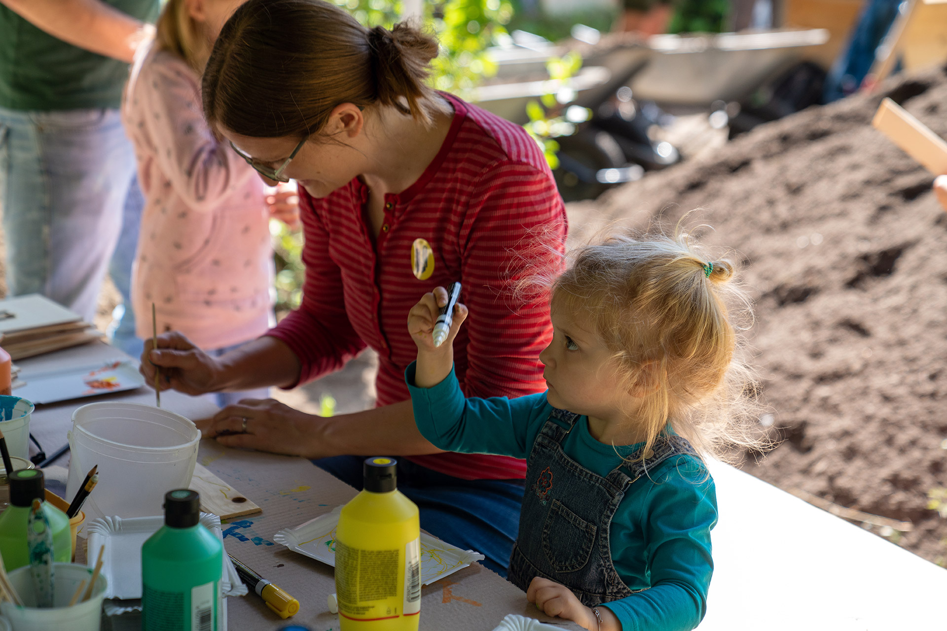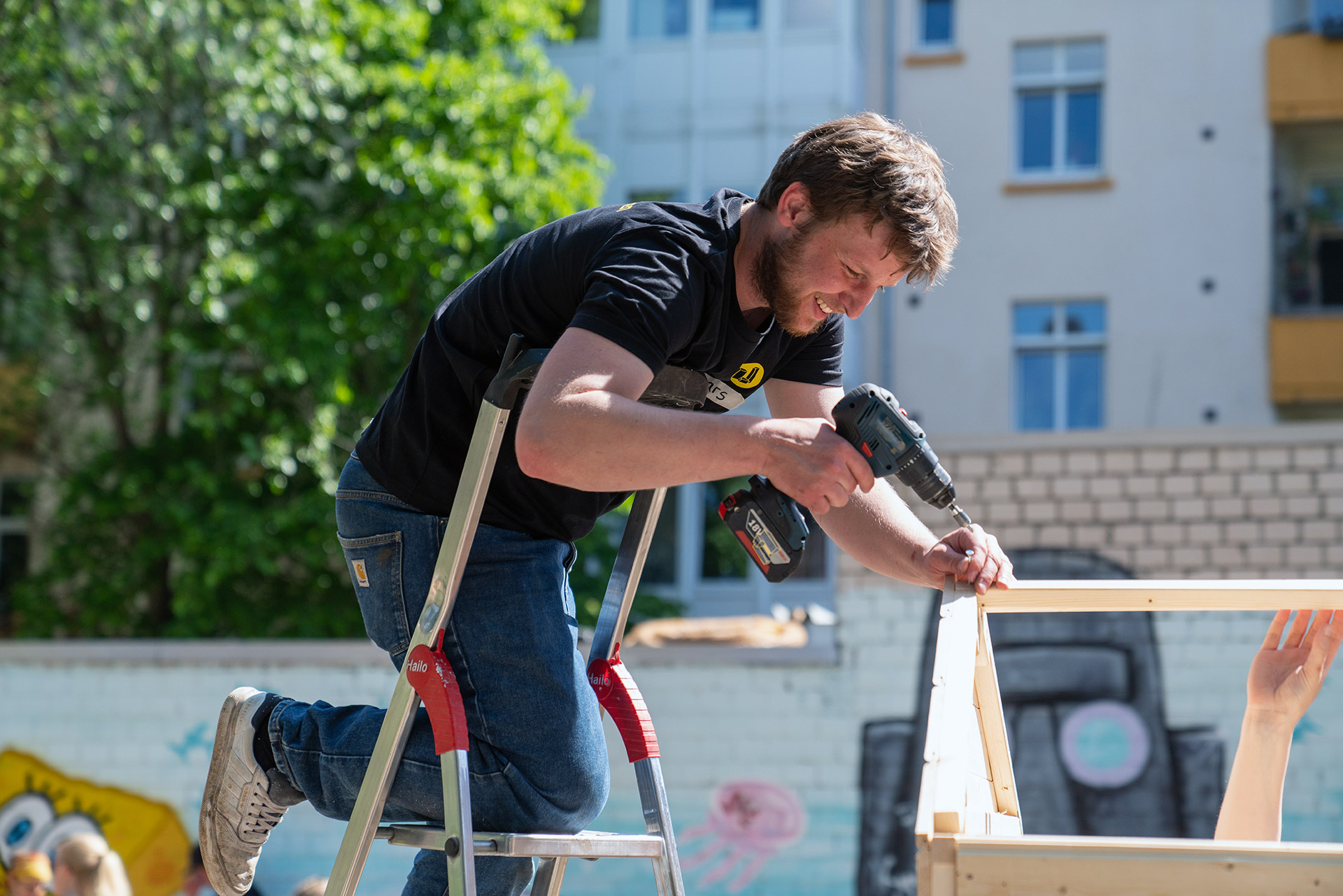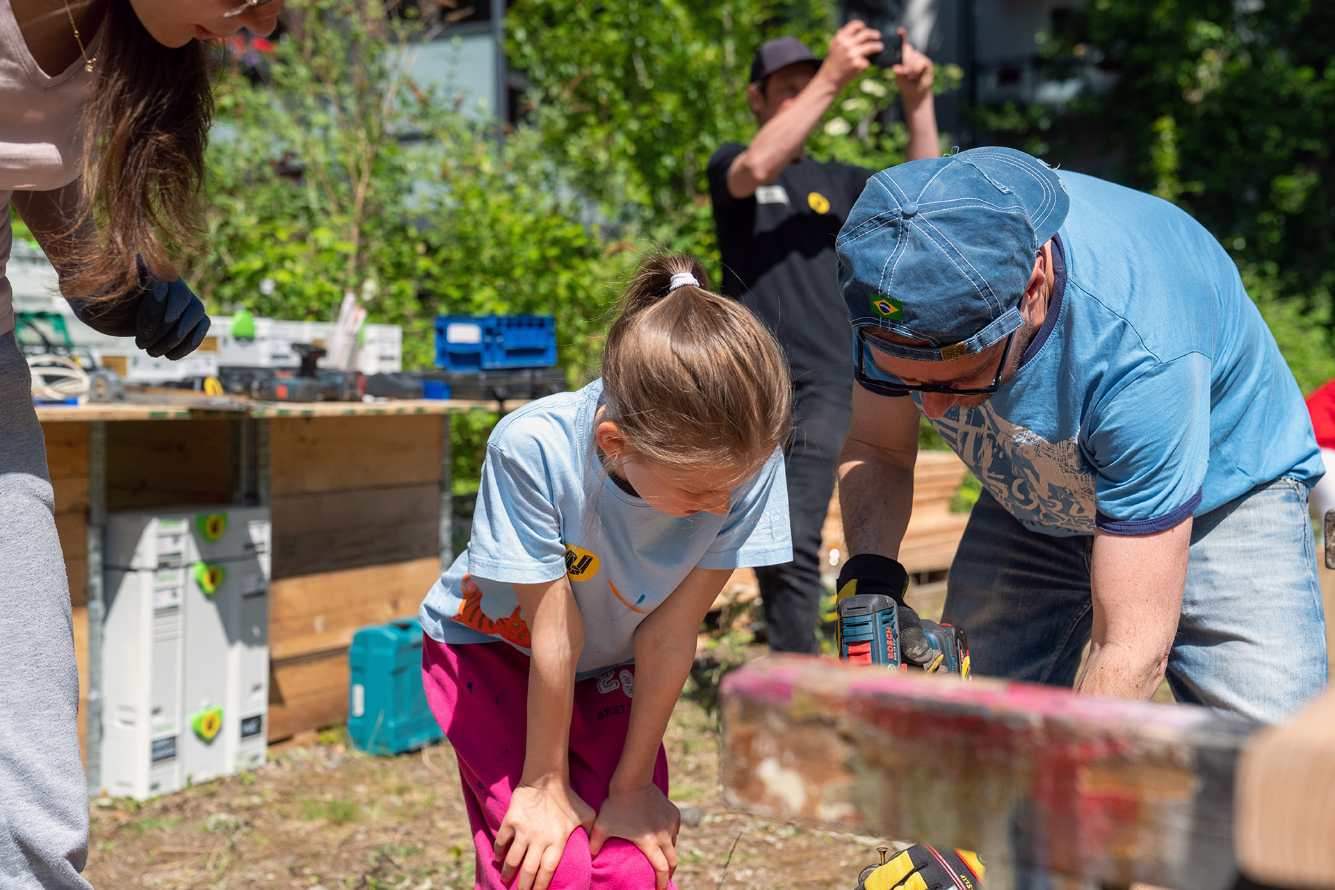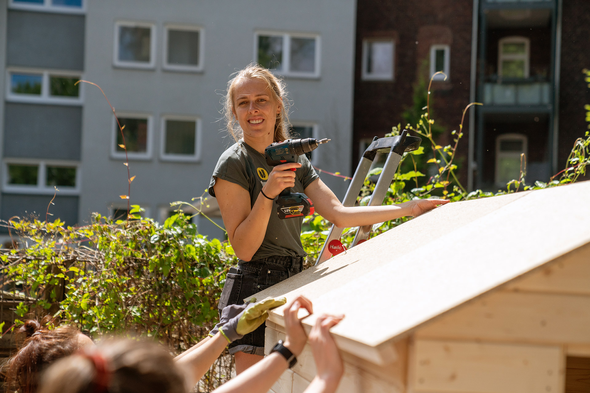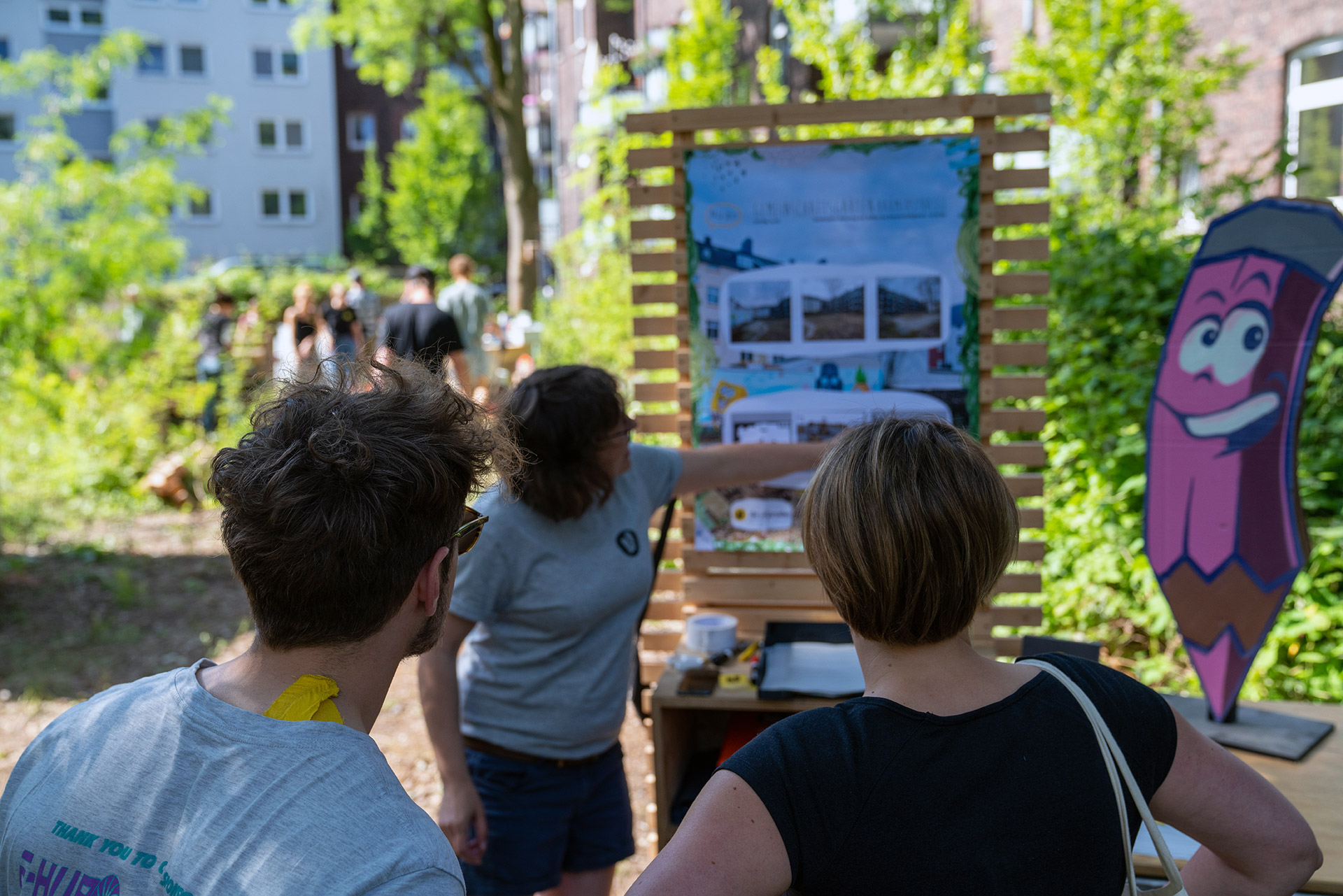 Baustellen gab es viele – Spaß und Engagement allerdings auch! Ob Hochbeete, Gartenhaus, selbstgemalte Schilder oder Sitzlandschaften – die verschiedenen Projekte wurden angeleitet durch uns in bester Laune und größtem Teamgeist von den zahlreichen Eintagsgartenpofis gemeistert. Mit dabei waren direkte Anwohner*innen des Innenhofes und der umliegenden Wohnhäuser, Teilnehmer*innen des Dortmunder Science Slams, sowie andere an Nachhaltigkeit und partizipativer Stadtgestaltung interessierte Dortmund*innen.