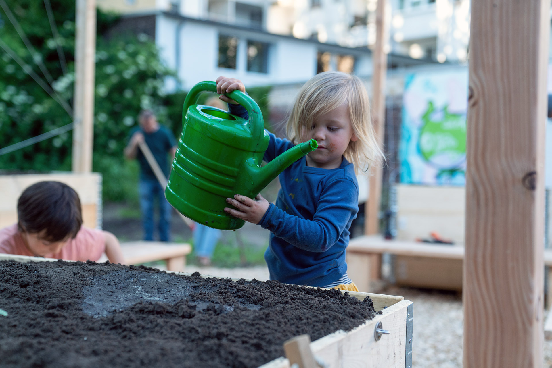 - Dem Grünflächenamt der Stadt Dortmund mit dem Büro für Kinder- und Jugendinteressen, die gemeinsam mit uns in eine kooperative Hinterhofgestaltung eingestiegen sind und den zukünftigen Kleinkindspielplatz mit dem Gemeinschaftsgarten zusammendenken.