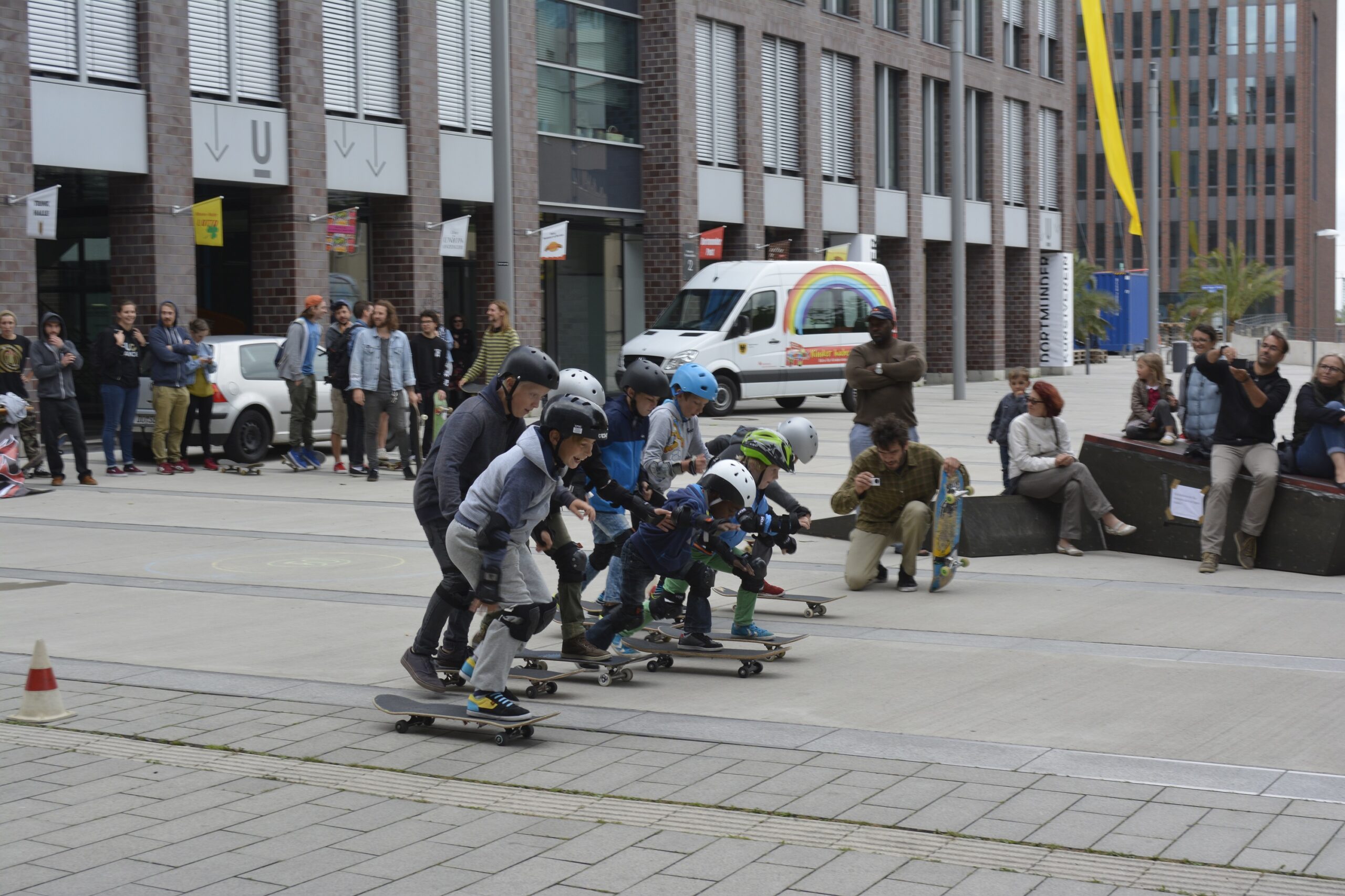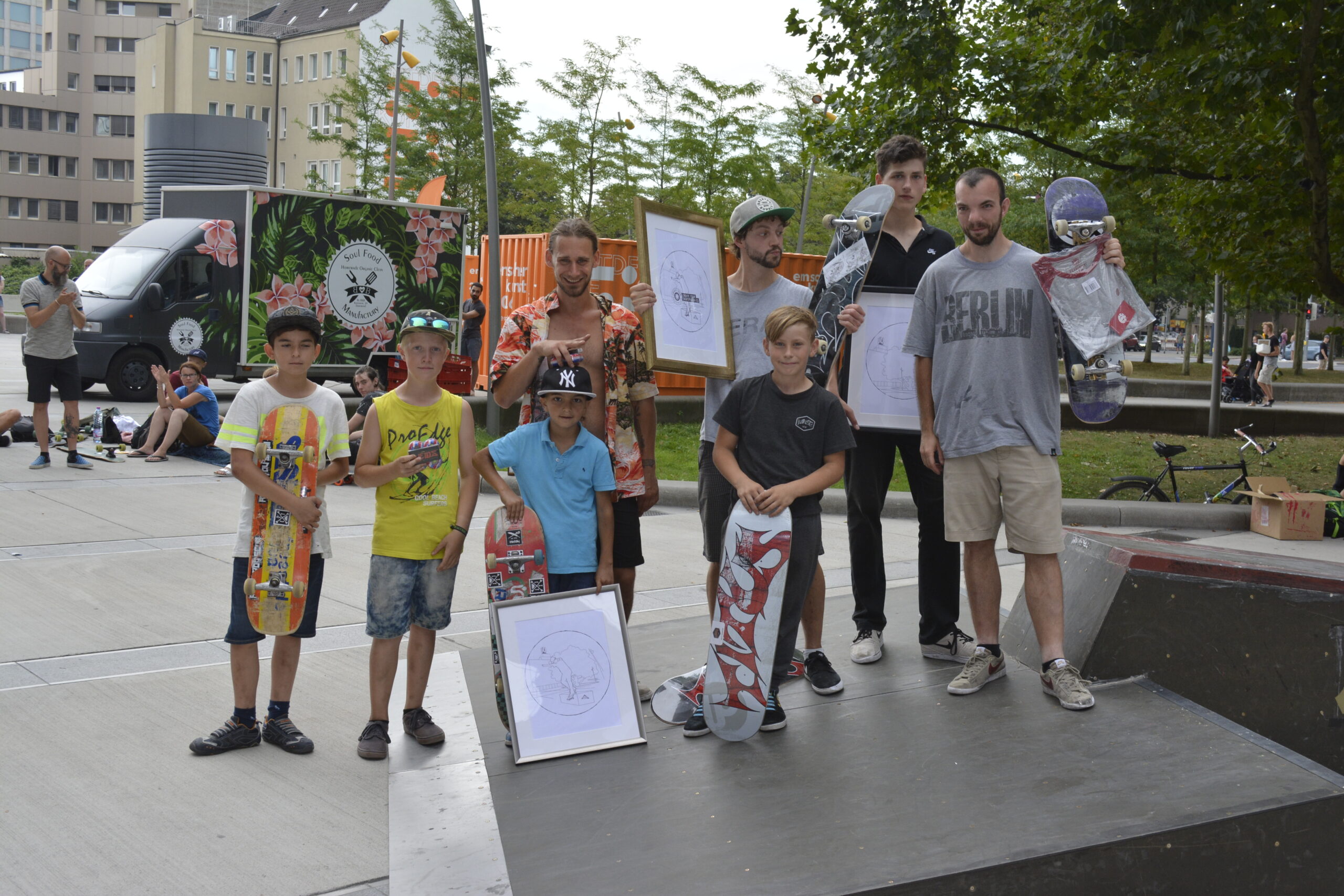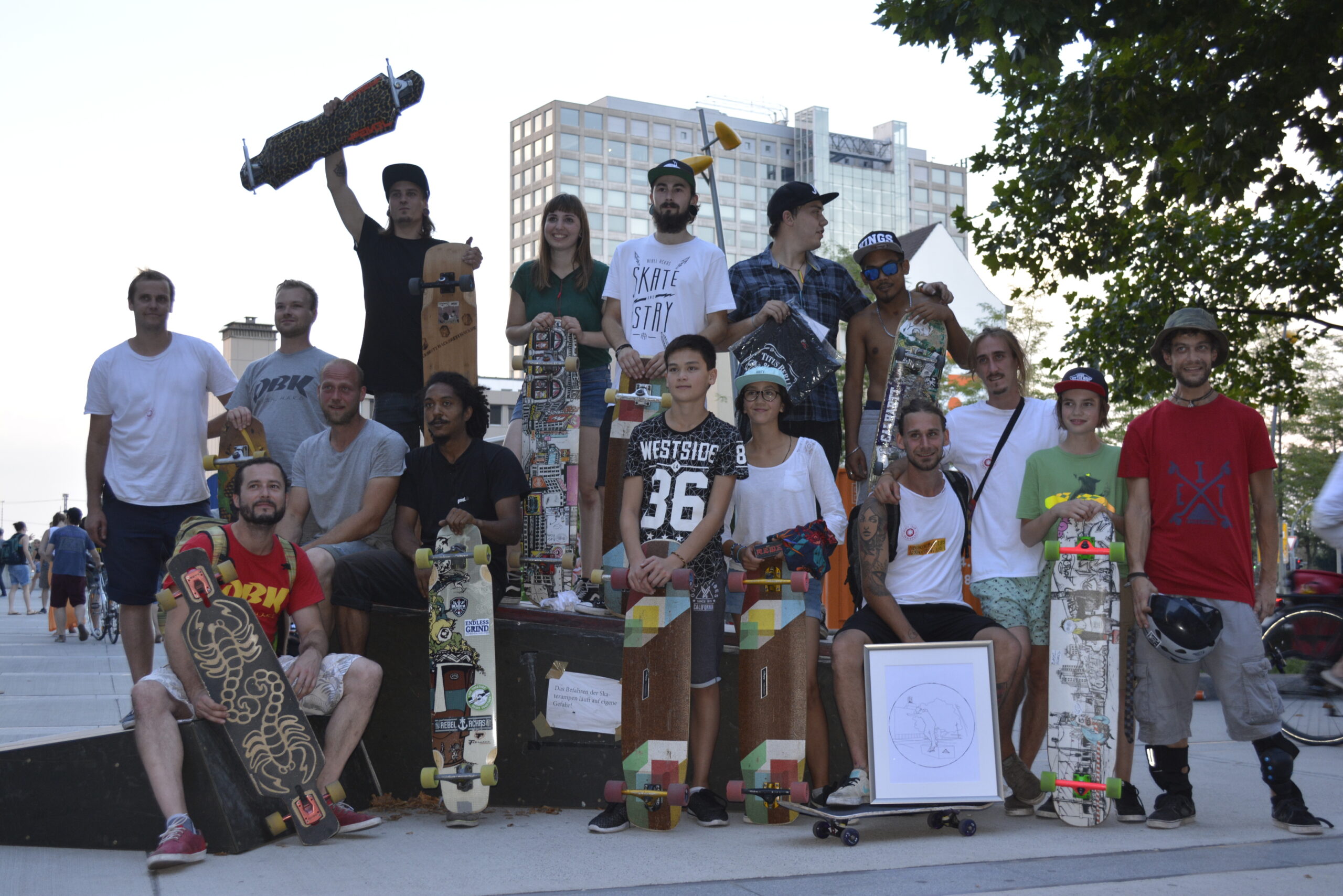 Ergänzend bot die Skateboardinitiative regelmäßig eine Skateboardschule für Anfänger*innen und Interessierte an, die den niedrigschwelligen Zugang zum Skateboarding förderte. Den Abschluss bildete eine gemeinsame Veranstaltung mit Contest und begleitendem Programm, die parallel zu einem Hip-Hop-Jam stattfand.