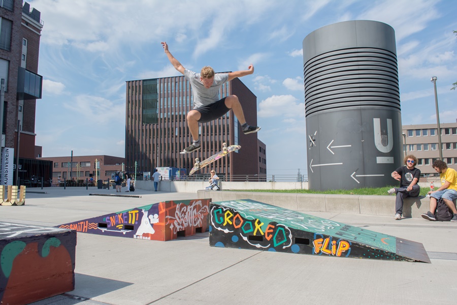 Mit „Create Your Skate Plaza 2.0“ setzten wir gemeinsam mit der Skateboardinitiative Dortmund e. V. ein partizipatives Bau- und Gestaltungsprojekt im öffentlichen Raum um. Aufbauend auf den positiven Erfahrungen aus dem Vorjahr entwickelten und realisierten wir erneut mobile Skaterampen, die vom 25. Juli bis zum 27. August vor dem Dortmunder U frei nutzbar waren.