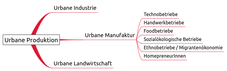 Die Forschungsarbeiten untersuchten systematisch die ökonomischen, räumlichen, rechtlichen, technischen und sozialen Rahmenbedingungen urbaner Produktion. Hierzu gehörte:
