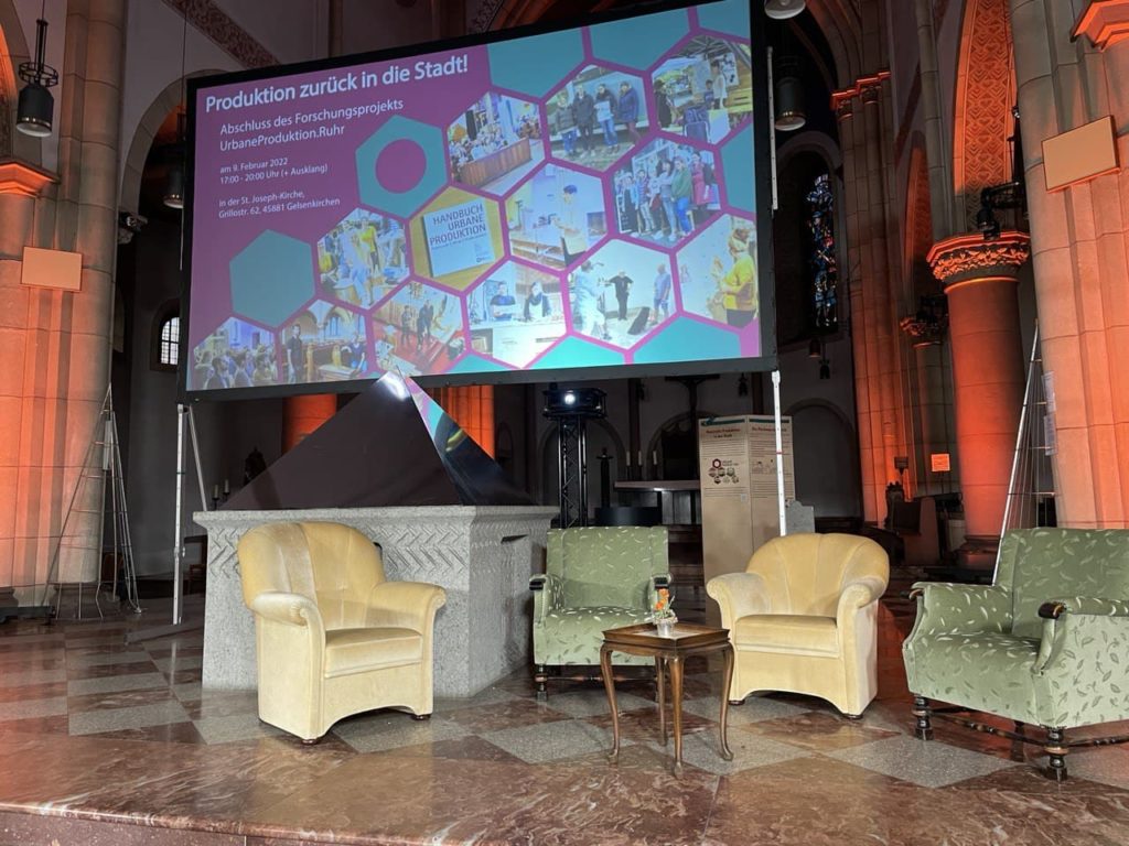 Im Zuge des BMBF-Förderaufrufs „Transformation urbaner Räume“ wurde das interdisziplinäre Verbundprojekt UrbaneProduktion.Ruhr konzipiert und umgesetzt. Ziel des Vorhabens war es, zivilgesellschaftliche Akteurinnen und Akteure aktiv in urbane Transformationsprozesse einzubinden, Raumstrukturen nachhaltig zu verändern und urbane Produktion in deutschen Quartieren neu zu denken. Das Projekt verfolgte darüber hinaus das Ziel, neue Werkzeuge für die Planung und das Wissensmanagement zu entwickeln sowie neue Geschäfts- und Betriebskonzepte für urbane Produktionsformen zu erproben. Damit sollte ein Pionierprojekt für urbane Infrastrukturen geschaffen werden, das sowohl wissenschaftliche Erkenntnisse generiert als auch praxisnahe Lösungsmodelle für Städte und Kommunen anbietet.