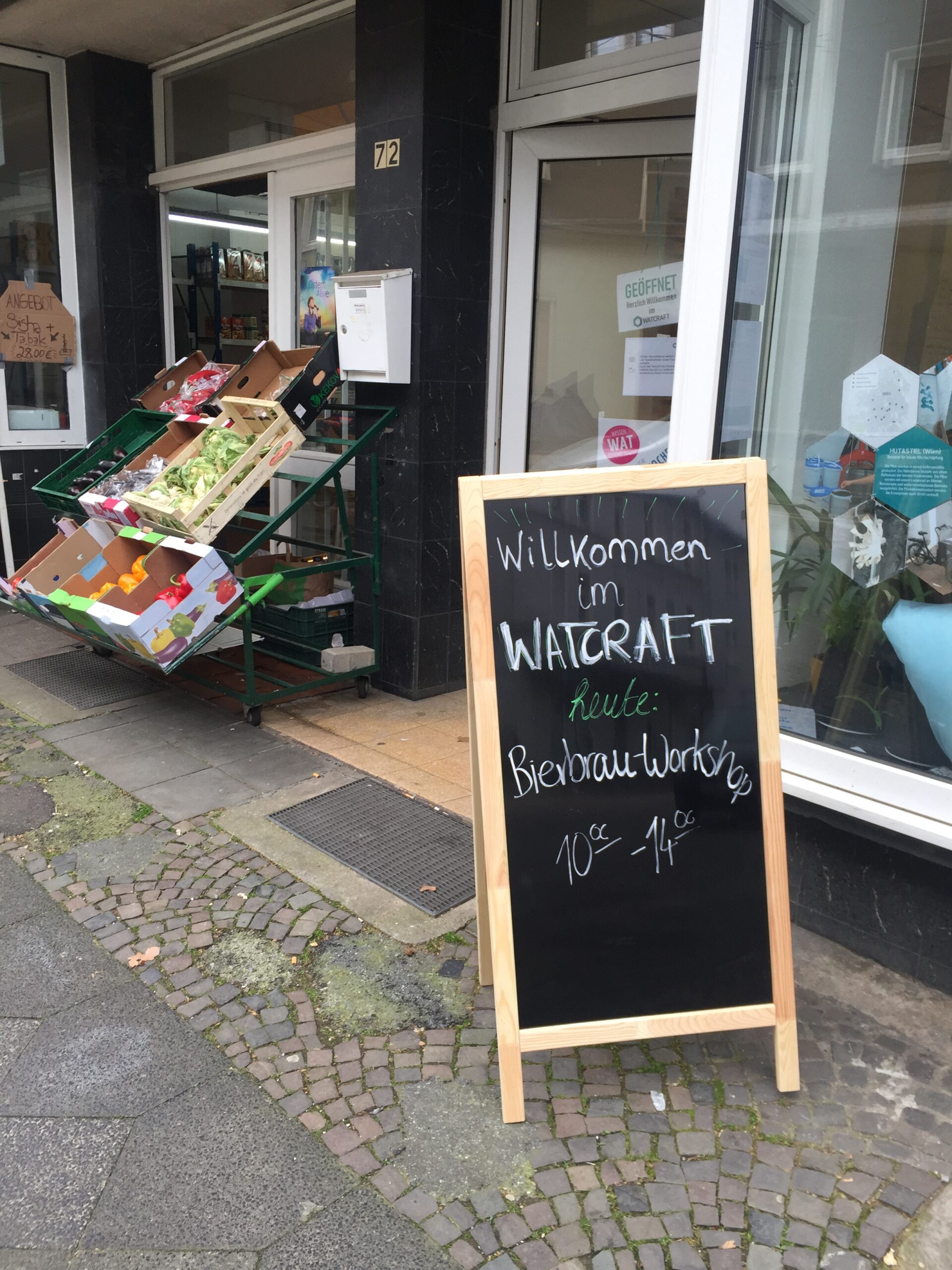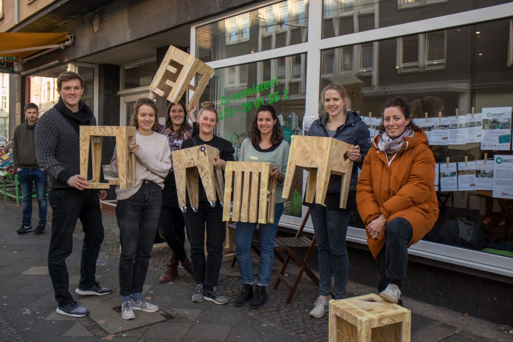 Ausgangspunkt bildete die temporäre Zwischennutzung „WatCraft“ in einem leerstehenden Ladenlokal auf der Hochstraße. Über mehrere Monate hinweg schufen wir dort einen offenen Experimentierraum, in dem wir gemeinsam mit Bewohner*innen, lokalen Initiativen und Produzent*innen Workshops, Diskussionen und Veranstaltungen rund um die Themen Selbermachen, nachhaltige Produktion und lokale Wertschöpfung umsetzten. Ziel war es, urbane Produktion nicht nur theoretisch zu erforschen, sondern praktisch erlebbar zu machen und gemeinsam mit dem Stadtteil weiterzuentwickeln.