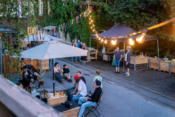Bei Essen und Gesprächen kamen Nachbar*innen vorbei, probierten aus und erkundeten die neu entstandene Fläche.